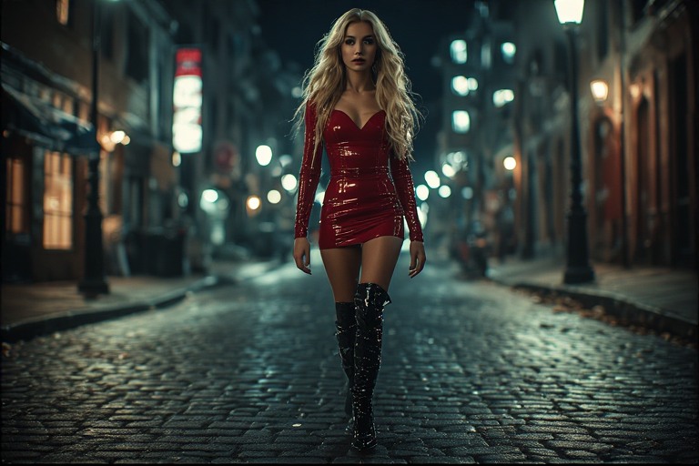 Emma je noćas odlučila produžiti šetnju gradom. Ulične lampe bacale su zlatni sjaj na pločnike, a hladan povjetarac stvarao je savršenu ravnotežu između misterije i elegancije. Crne lakirane štikle bile su još sjajnije u refleksiji lampi, svaka petica poput malog umjetničkog djela.